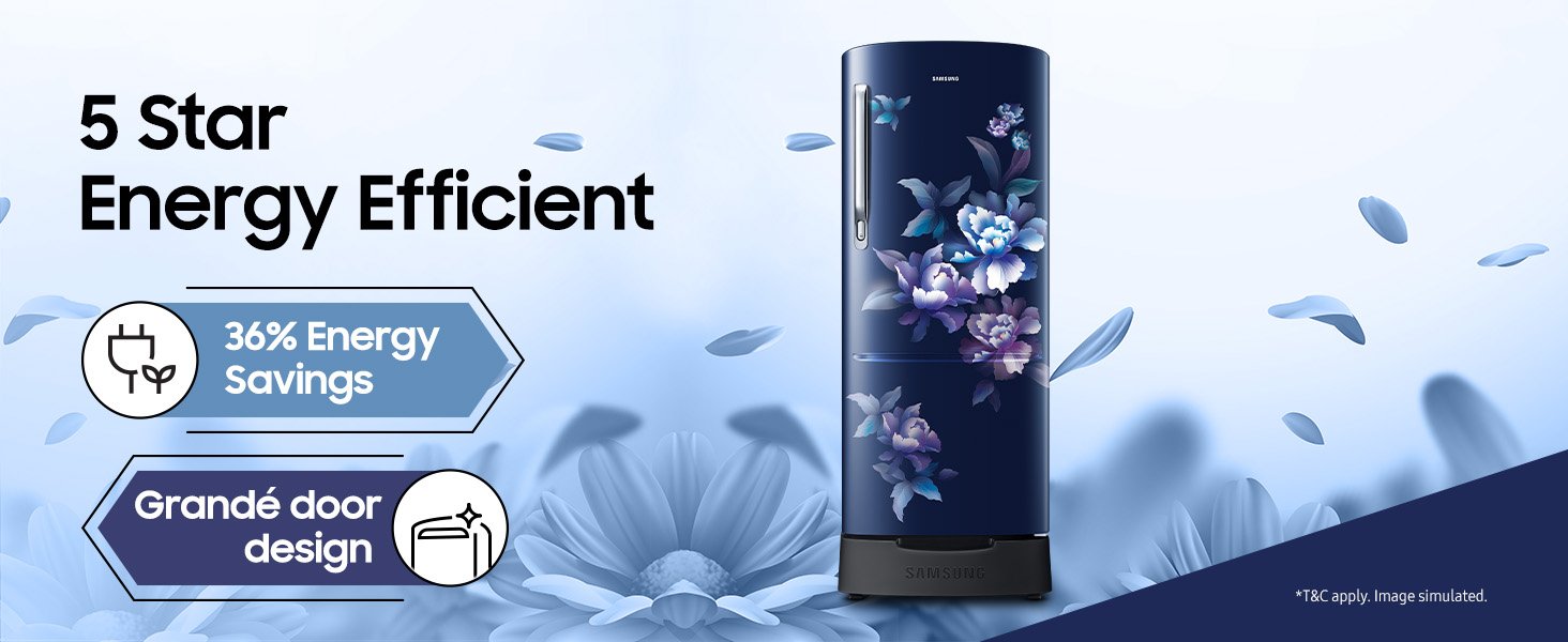 Be the first to review “Samsung 183 L, 5 Star, Digital Inverter, Direct-Cool Single Door Refrigerator (RR20D2825HV/NL, Himalaya Poppy Blue, Base Stand Drawer)”